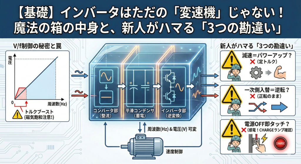 【基礎】インバータはただの「変速機」じゃない! 魔法の箱の中身と、新人がハマる「3つの勘違い」