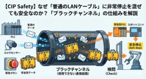 PLCとタッチパネルの接続などで使うシリアル通信です。