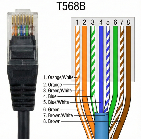 ※AとBの2種類ありますが、日本では『T568B』が圧倒的に主流です。 特殊な指定がない限り、『白・橙』から始まるT568Bで作れば間違いありません。