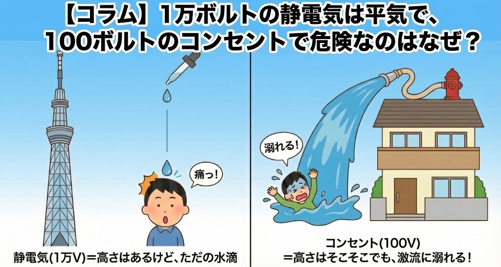 【コラム】1万ボルトの静電気は平気で、100ボルトのコンセントで危険なのはなぜ?